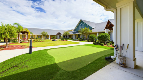 Located in the Central Florida community of Wildwood, the campus is designed to support rest and reflection during treatment. Outdoor features like a lush courtyard and a putting green provide additional space for structured activities and downtime between sessions.
